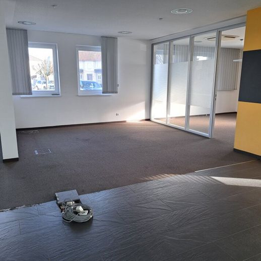 Die moderne Ausstattung mit zeitlosen Fliesenböden und schicken Glaselementen bietet vielen Branchen ein optimales Ambiente. Durch die Nachbarschaft würde auch eine Arztpraxis o.ä. gut dazu passen. Die Praxis bzw. das Büro bietet mit seiner Größe von ca. 190 m² ein sehr gutes Raumangebot. Aufgeteilt ist dieses, ebenerdig und barrierefrei mit viel Lichteinfall und hellen Räumen. Im Eingangsbereich befindet sich ein Großraumbüro, des weiteren stehen 5 Arbeitsräume sowie 2 Nebenräume zur Verfügung. Die Einheit verfügt über eine kleine Teeküche mit Geschirrspüler, Kühlschrank und Mikrowellenherd sowie 2 WC-Einheiten für Damen und Herren.