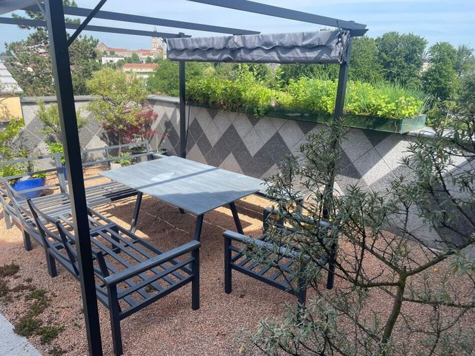 Die Dachgeschosswohnung umfasst 3 Zimmer sowie eine großzügige Terrasse mit traumhaftem Weitblick – ein echtes Highlight.
