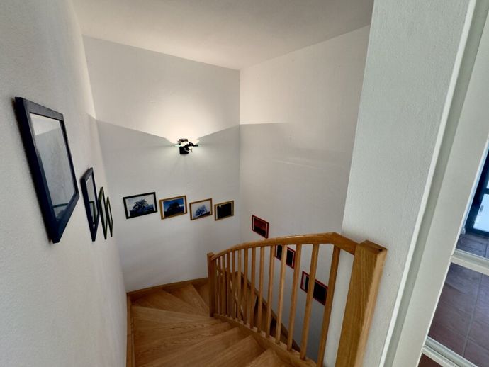 Ein zusätzlicher Zugang über den Außenbereich führt in das Dachgeschoß, wo die Möglichkeit besteht, die privaten Wohnräume individuell zu optimieren. Diese Erweiterung erlaubt eine klare Trennung von Beruf und Privatleben und steigert die Flexibilität der Nutzung erheblich.