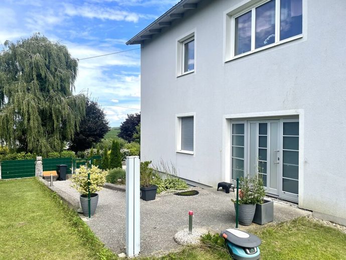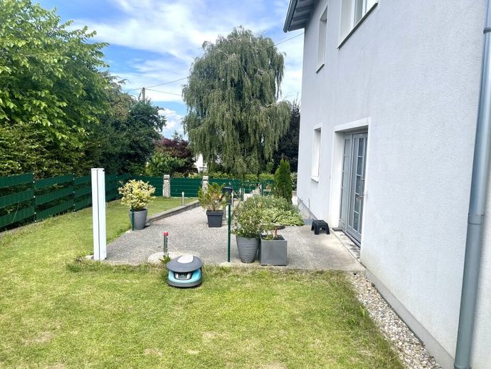Der Garten ist durch den Rasenroboter pflegeleicht und ist sonnig ausgerichtet. natürlich gibt es im Haus eine Vollgarage mit elektrischen Tor.