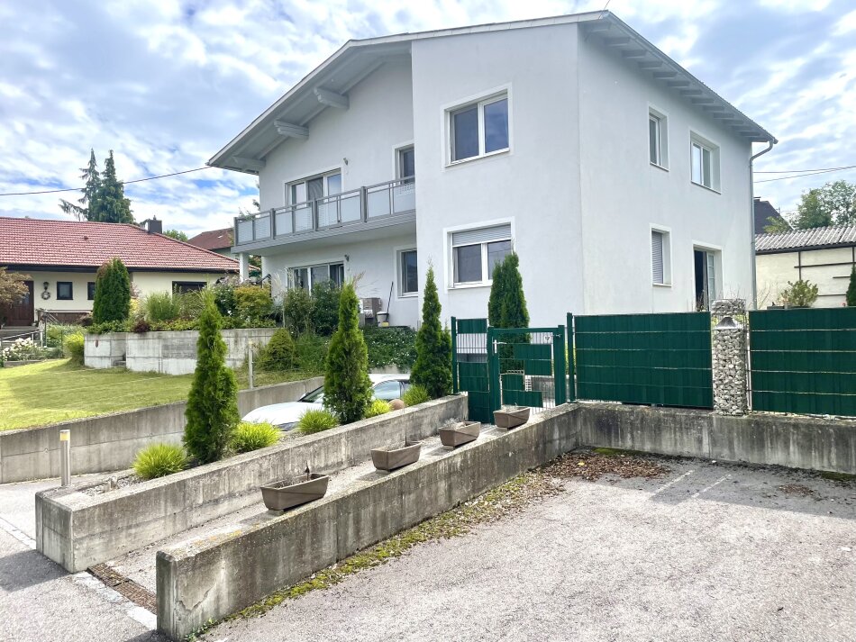 Im Erdgeschoss befindet sich eine geräumige Familienwohnung mit 3 Zimmern sowie Vorraum, Küche mit Essbereich, Abstellraum, WC und Bad. Das Wohnzimmer bietet eine Terrasse mit 20 m² samt Zugang in den Garten.